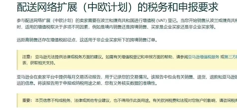 3、参与中欧计划卖家必须注册波兰和捷克VAT(也就是说,无论卖家在亚马逊有无波兰和捷克的站点,只要卖家加入了中欧计划,就必须注册波兰和捷克VAT)。